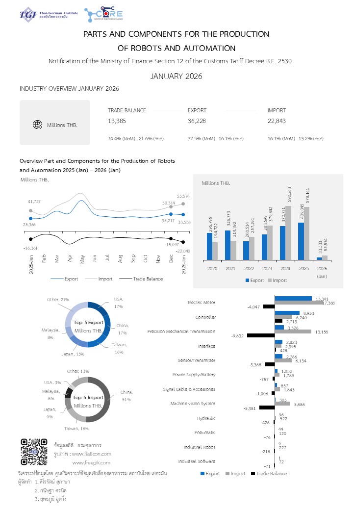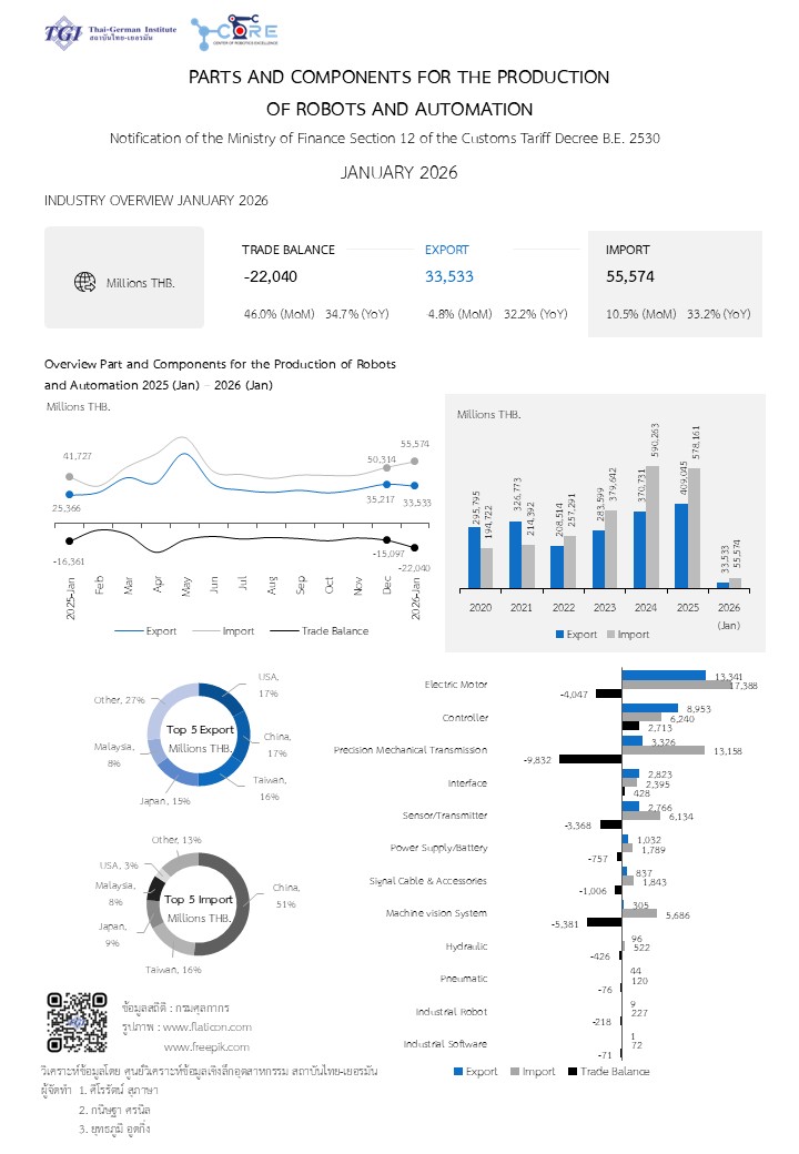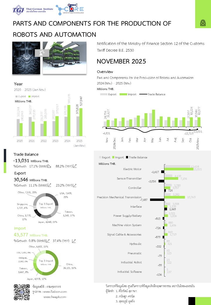สถิตินำเข้า-ส่งออกอุตสาหกรรมหุ่นยนต์และระบบอัตโนมัติของประเทศ