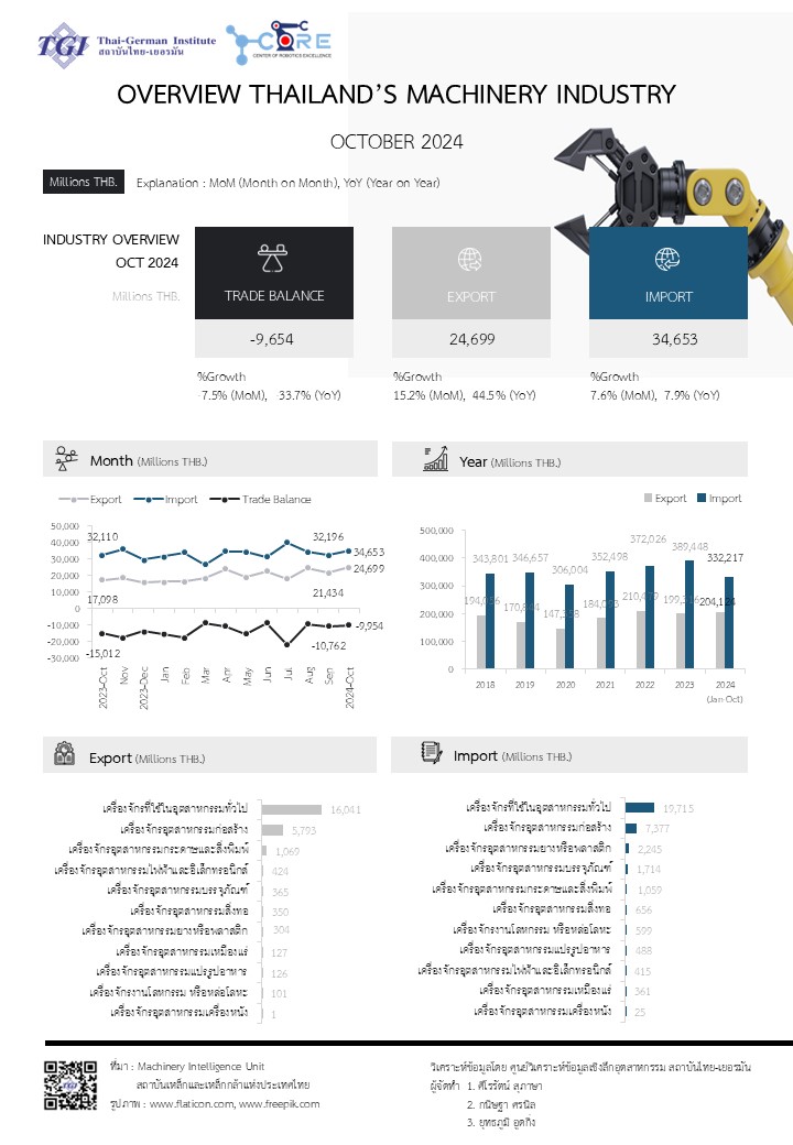 รายงานภาวะอุตสาหกรรมเครื่องจักรของประเทศไทย เดือน สิงหาคม ปี 2025
